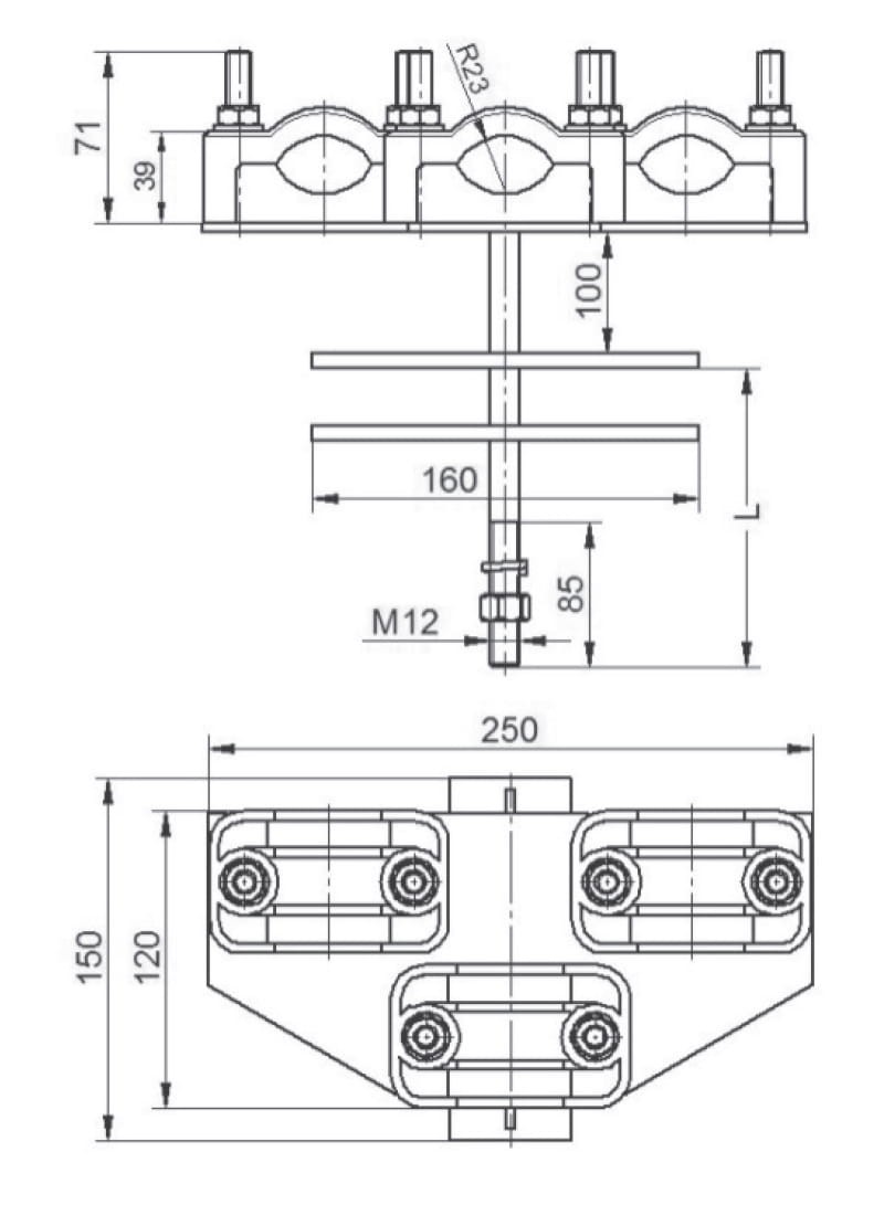Uchwyt potrójny kompletny do mocowania kabla 3xUKB-2/250(ż)km BK3412 BEZPOL