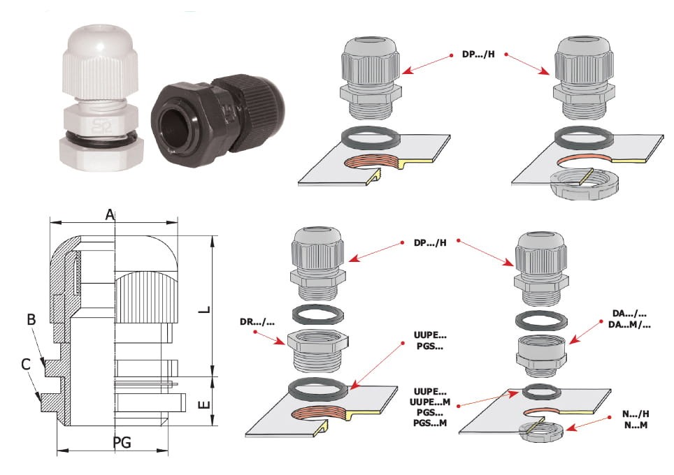 - znamionowy rozmiar gwintu metrycznego PG P7