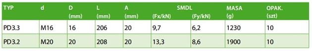 ENSTO PD3.2 - Hak nakrętkowy M20x208 - dystansowy (UN-N)