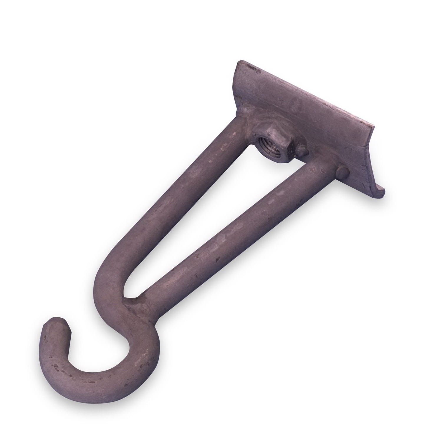 Hak stosowany jest do zamocowania uchwytów odciągowych i przelotowych oraz na słupach narożnych z załomem zewnętrznym, przede wszystkim przy budowie linii z kablem uniwersalnym. Wykonany ze stali cynkowanej na gorąco.