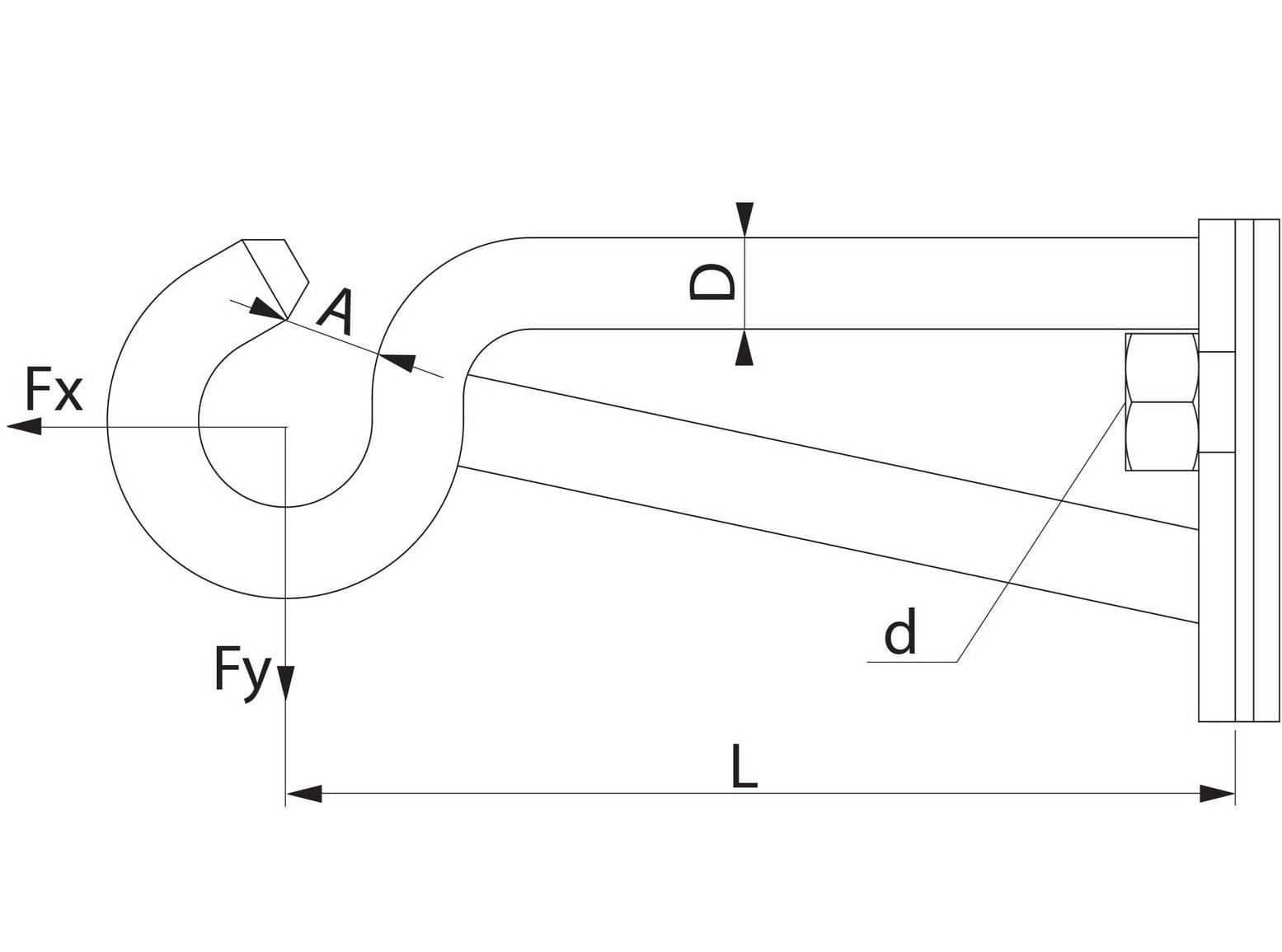 Hak nakrętkowy M20, załom po zewnętrznej stronie słupa służy do odsadzenia linii od powierzchni słupa przy załomie linii poprowadzone po zewnętrznej stronie słupa.