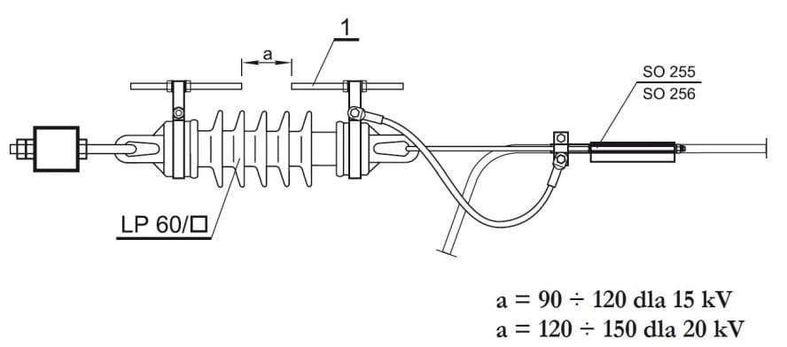 - przeznaczony do izolatorów LP 60 przy zastosowaniu uchwytów SO255 zobacz SO181.6 zobacz