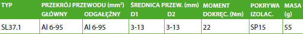 Do wykonania połączenia przewodów aluminiowych nie obciążonego naprężeniem mechanicznym. SL 37.1 zaciskany jest jedną śrubą M8.