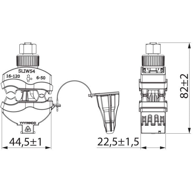 Przeznaczony do połączeń linii izolowanej głównej z linią odgałęźną o przekroju do 50 mm2 lub z linią przyłącza. Do połączeń przewodów izolowanych Al i Cu.