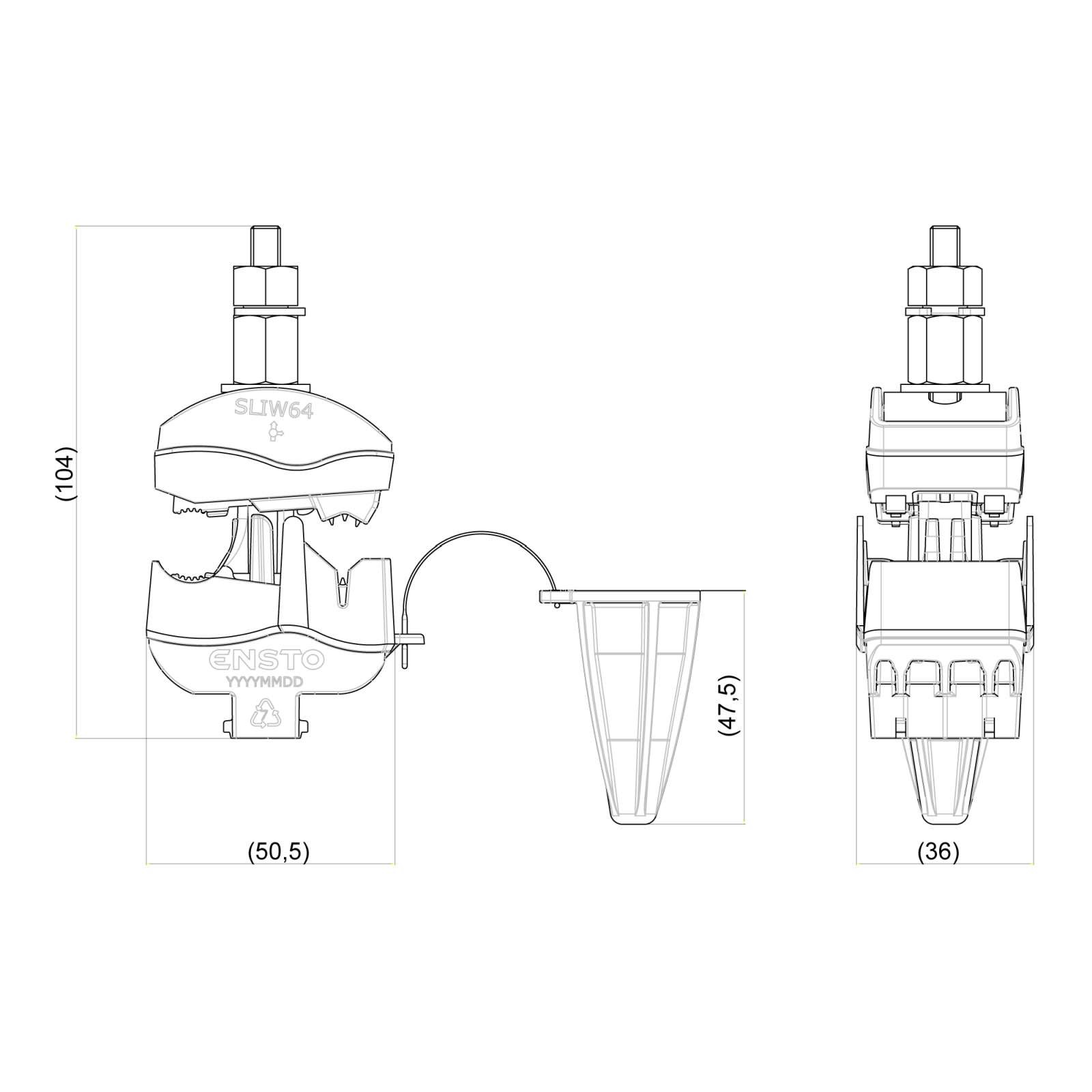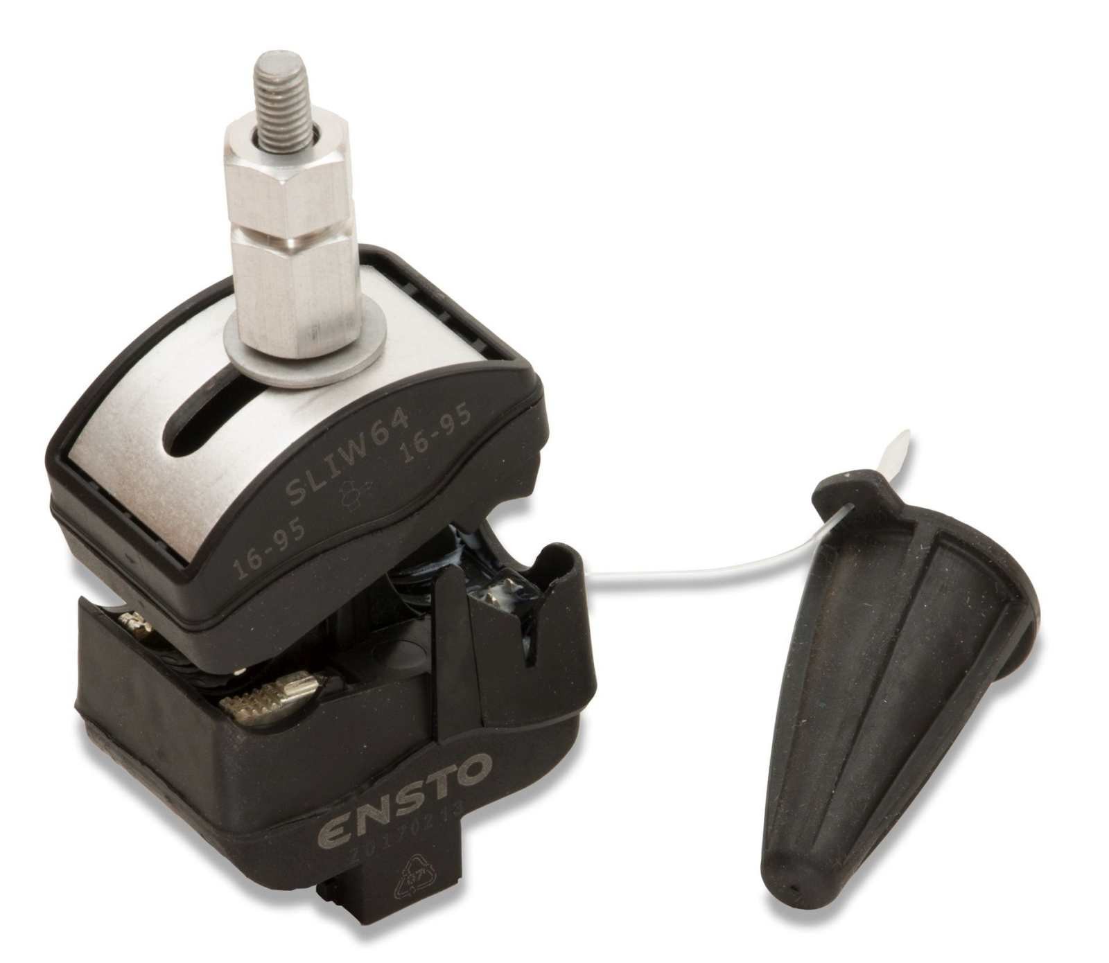 Zacisk przebijający izolację 16-95mm² / 16-95mm², wodoszczelny ENSTO SLIW64 przeznaczony do odgałęziania linii izolowanej od linii gołej. Stosowany do przewodów Al i Cu.