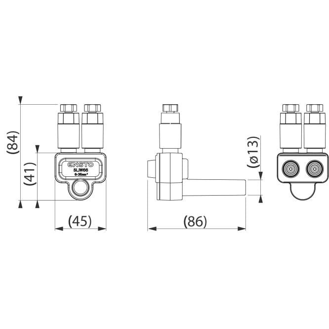 Zacisk ENSTO SLIW 66 oferowany przez PROSPERSKLEP pozwala na wykonanie dwóch odgałęzień z jednego zacisku, każde zaciskane niezależną śrubą. Zacisk ten może być montowany do zacisków SLIP22.1, SLIP32.2, SLIW57 i SLIW 58. Umożliwia to wykonanie odgałęzienia dwoma (SLIW66) przewodami przyłączy z jednego zacisku.