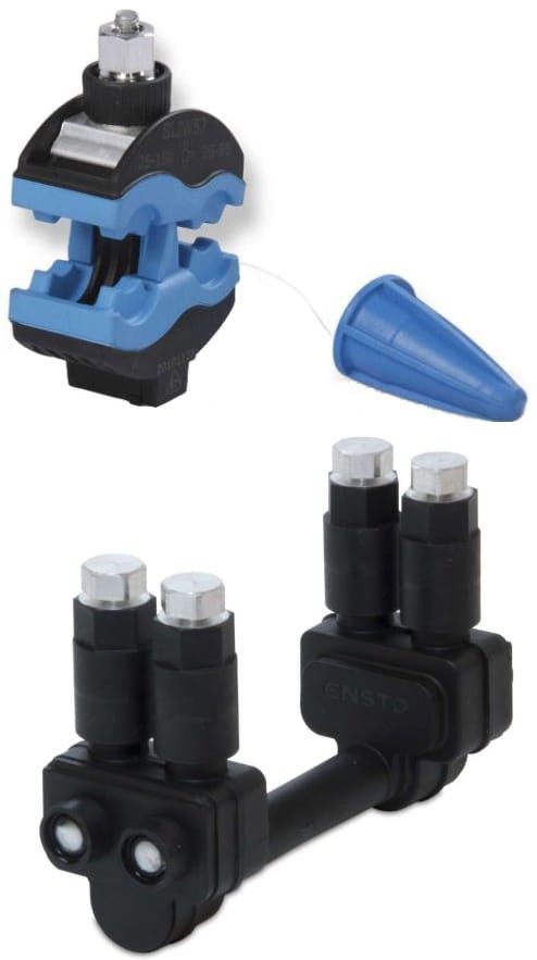 ENSTO SLIW 67.57 - Zestaw zacisk odgałęźny dwustronny przebijający izolację 4x 6-35mm2 ENSTO SLIW 67 + zacisk Al/Cu Al 25-150, Cu 25-95 SLIW57