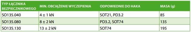 Typ łącznika bezpiecznikowego należy dobierać w zależności od typu kabla, typu haka, strefy