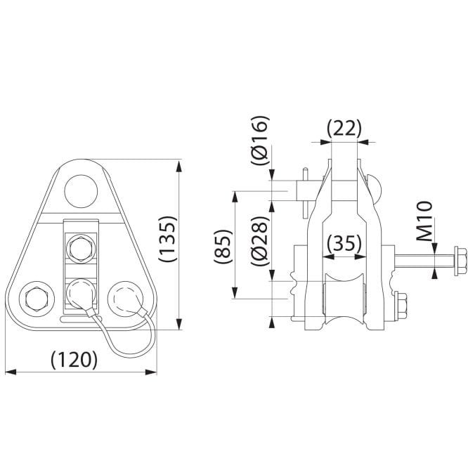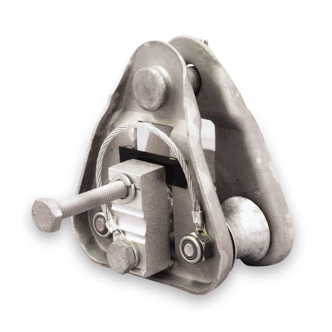Uchwyt przelotowo-narożny dostępny w PROSPERSKLEP przeznaczony jest do zawieszania przewodów gołych. Ponadto może służyć jako rolka podczas rozwieszania przewodu, specjalne rolki są zbędne. Złączki przewodowe o średnicy mniejszej od 30 mm mogą być przeciągane przez uchwyt. Nie posiada luźnych części, łatwy do montażu nawet w trudnych warunkach. Ząbkowany element zaciskający jest połączony przewodem z obudową celem wyrównania potencjału. Testowany na brak zakłóceń radioelektrycznych. Wytrzymałość na zerwanie 36kN. Śruba odciągowa 16 mm.