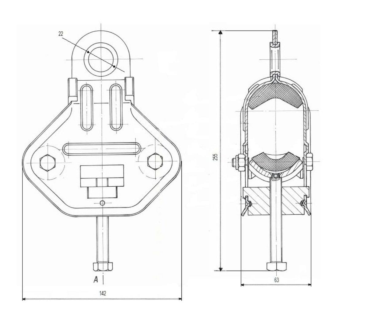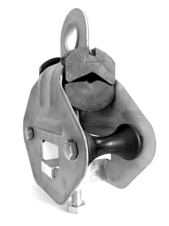 Służy do zawieszania przewodów izolowanych typu AsXS(n) na słupach przelotowych i narożnych o załomie do 90°. Uchwyt umożliwia mocowanie przewodów o różnych przekrojach bez wymiany wkładek gumowych. Jest wyposażony w rolki montażowe, umożliwiające przeciąganie przewodu przez uchwyt podczas budowy linii.