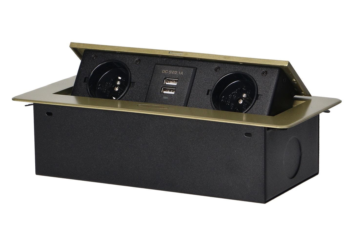 Gniazda 2x230V AC, 2xUSB wpuszczane w blat mosiądz