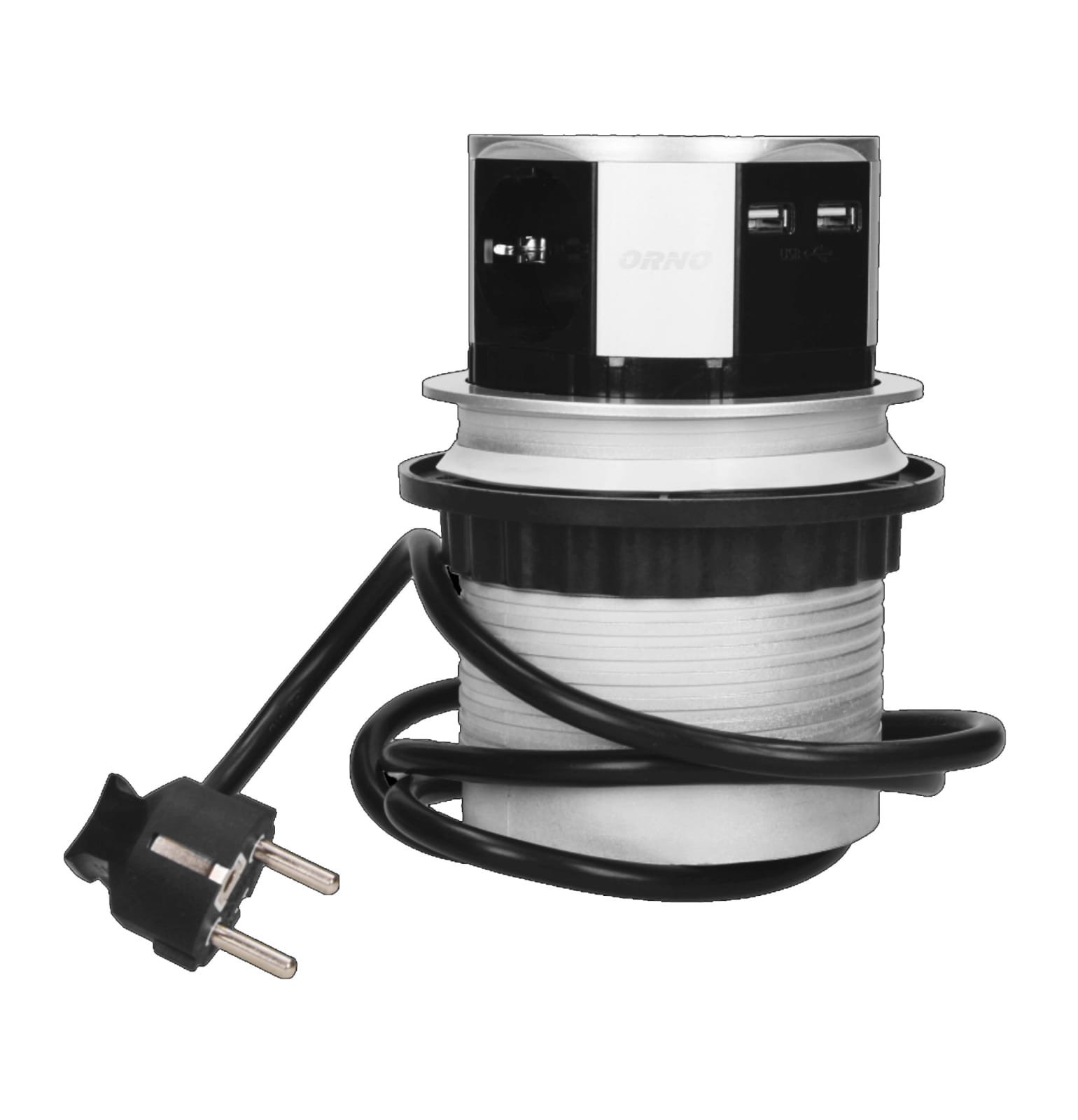 Gniazdo meblowe, wysuwane z blatu 3x250V AC z ładowarką USB i przewodem 1,5m, OR-AE-1342(GS) Schuko - ORNO POLSKA