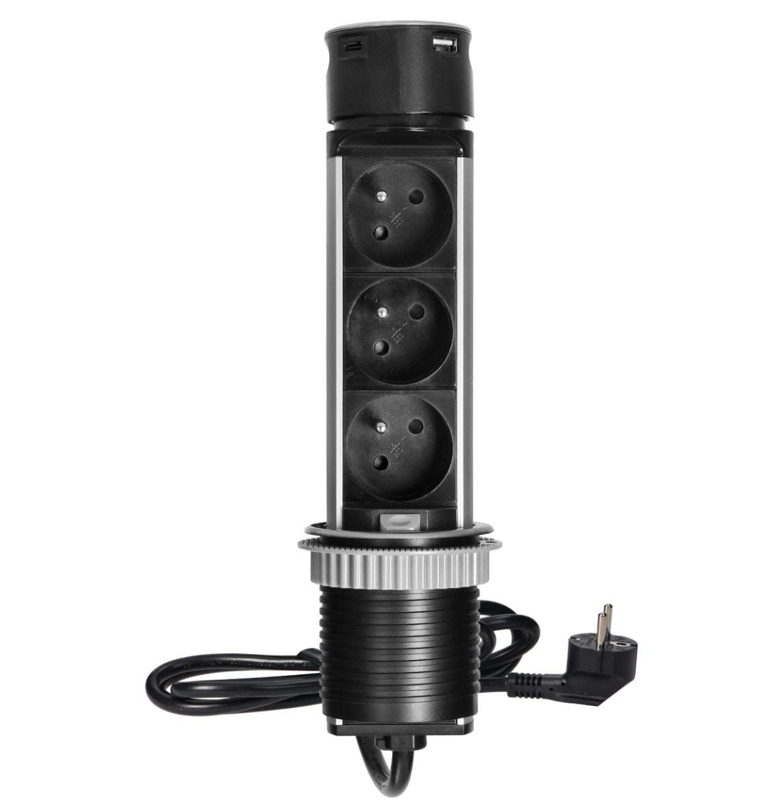 Gniazdo meblowe ⌀6cm 3x250V AC wysuwane z blatu z ładowarką USB przewodem 1,5m