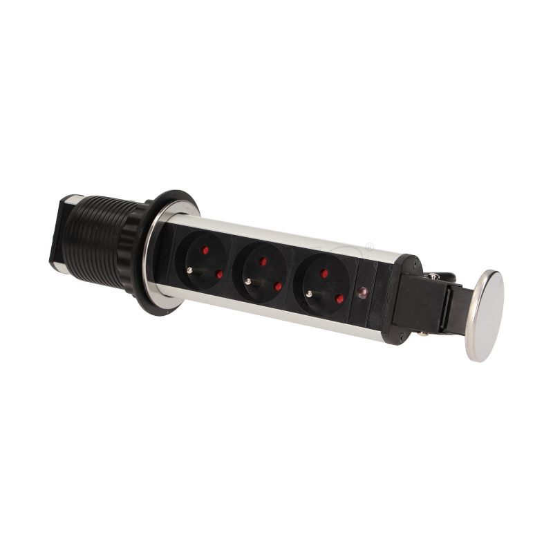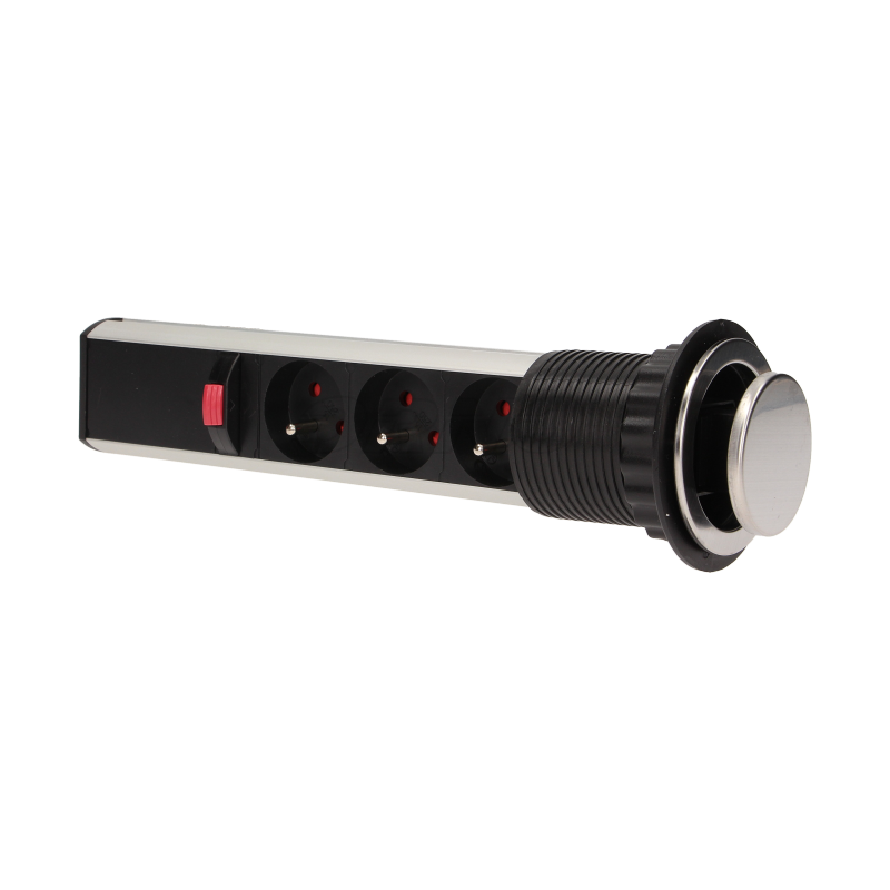 Gniazdo meblowe ⌀6cm 3x250V AC wysuwane z blatu z przewodem 1,8m