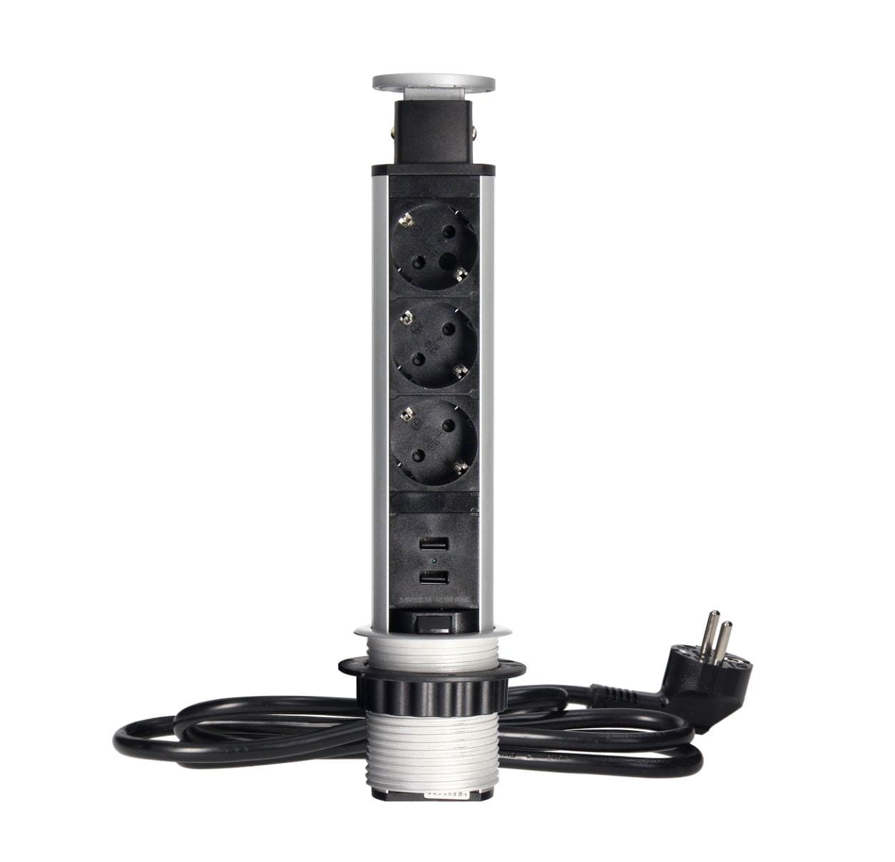 Gniazdo meblowe 3x2P+Z schuko z ładowarka USB i blokadą wysuwane z blatu