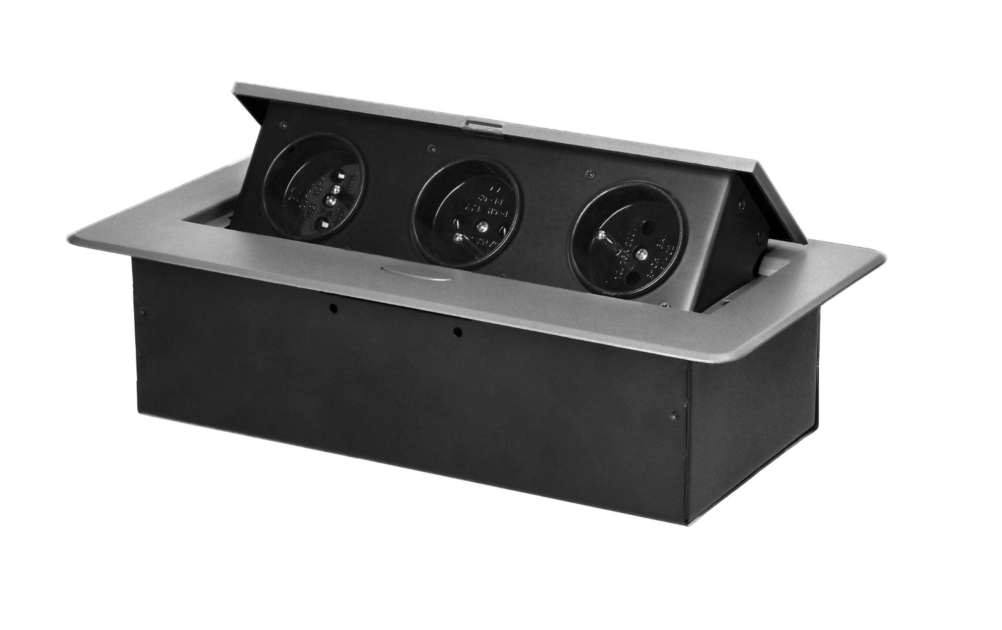 Gniazdo meblowe 3x2P+Z wpuszczane w blat srebrne