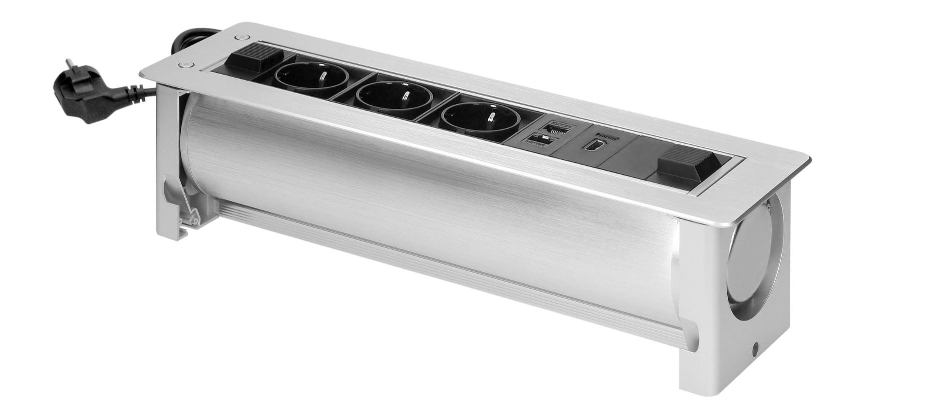 Gniazdo meblowe schuko 3x2P+Z 2xNET HDMI z elektrycznym otwieraniem