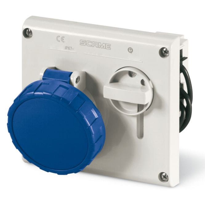 Gniazdo z zamykanym wyłącznikiem i blokadą bezpieczeństwa OMNIA 2P+E 32A IP67 405.3283 - SCAME