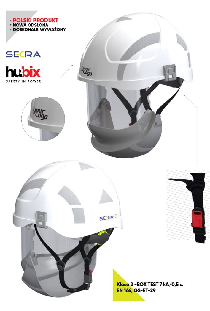 Nowością w PROSPERSKLEP Sosnowiec jest elektroizolacyjny hełm SECRA -2 ze zintegrowaną osłoną twarzy E6HT. Hełm wykonany z ABS przeznaczony do prac pod napięciem. Osłona twarzy wykonana z poliwęglanu charakteryzuje się odpornością na uderzenia cząstek o dużej prędkości – B ochroną przed kroplami i rozbryzgami cieczy – 3 ochroną przed łukiem elektrycznym – 8 ochroną przed stopionymi metalami i gorącymi ciałami stałymi – 9 oraz odpornością na zamglenie - N. Atutem modelu SECRA-2 w nowej odsłonie jest doskonałe wyważenie i 4-punktowy pasek podbródkowy zalecany do pracy na wysokości oraz funkcja szybkiego zapięcia, która ułatwia obsługę w rękawicach ochronnych.