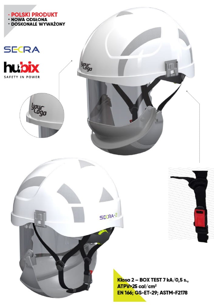 Nowością w PROSPERSKLEP Sosnowiec jest elektroizolacyjny hełm SECRA -2 ze zintegrowaną osłoną twarzy E40HT. Hełm wykonany z ABS przeznaczony do prac pod napięciem. Osłona twarzy wykonana z poliwęglanu charakteryzuje się odpornością na uderzenia cząstek o dużej prędkości – B ochroną przed kroplami i rozbryzgami cieczy – 3 ochroną przed łukiem elektrycznym – 8 ochroną przed stopionymi metalami i gorącymi ciałami stałymi – 9 oraz odpornością na zamglenie - N. Atutem modelu SECRA-2 w nowej odsłonie jest doskonałe wyważenie i 4-punktowy pasek podbródkowy zalecany do pracy na wysokości oraz funkcja szybkiego zapięcia, która ułatwia obsługę w rękawicach ochronnych.