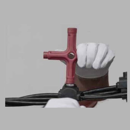 6) Brak połączenia galwanicznego – w narzędziach hybrydowych nie ma połączenia między głowicą roboczą a gniazdem napędowym, co jest szczególnie ważne w przypadku narzędzi składanych, posiadających napęd kwadratowy:nawet przypadkowe rozłączenie takiego układu narzędzi nie spowoduje pojawienia się potencjału, na narzędziu które jest w bezpośrednim kontakcie z urządzeniem pod napięciem