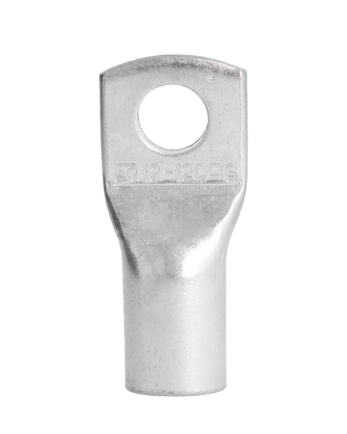 Końcówka kablowa KOR 120/12 50 sztuk miedziana. Prezentowana oczkowa rurowa, cynowana galwanicznie służy do zaprasowywania umożliwia zakończenie żył kabla miedzianego. Miedziana, rurowa końcówka kablowa Znajduję zastosowanie tam gdzie zachodzi konieczność przyłączenia przewodu dochodzącego do np. rozdzielni, szyny zbiorczej lub innego urządzenia przy pomocy zacisku śrubowego. Zastosowanie końcówek oczkowych zwiększa bezpieczeństwo i trwałość tego typu połączeń. W przeciwieństwie do połączeń lutowanych zastosowanie końcówek oczkowych zmniejsza ryzyko przegrzewania się żył oraz izolacji. W przypadku zaprasowywania żył sektorowych należy je przeformować na „okrągło”.