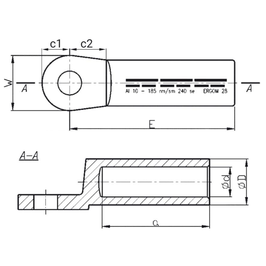 - rodzaj końcówka kablowa, aluminiowa, szczelna, oczkowa