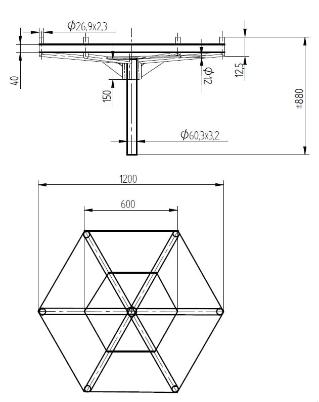 Konstrukcja KZH-1/E na obejmie O-3 z hakiem Fi 16 EP-KO-NN-KZH1-03 - DELKAR