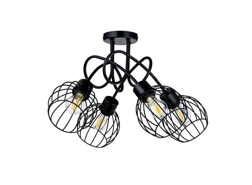 - jej korpus oraz 4 szkieletowe klosze zostały wykonane z metalu pomalowanego proszkowo na kolor czarny