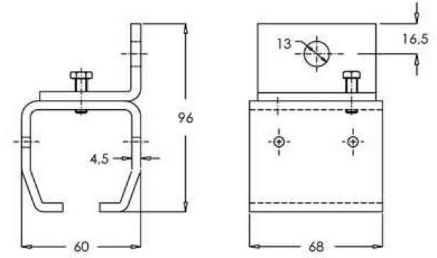 Ten model mocowania umożliwia przytwierdzenie szyny asekuracyjnej do ściany lub np. boku ceownika.