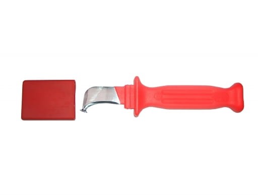 Nóż ze stopką do zdejmowania wierzchniej warstwy izolacji, ostrze z osłoną. Ostrze wykonane ze stali nierdzewnej. Rękojeść wykonana z poliamidu wzmocnionego włóknem szklanym. Narzędzie wykonane i badane zgodnie z normą IEC 60900.