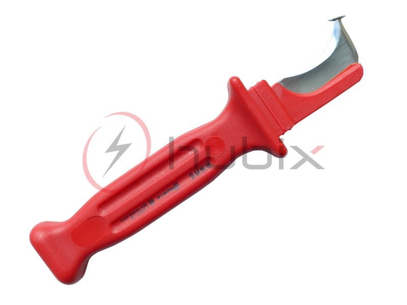 Prace pod napięciem do 1000V AC lub 1500V DC. Nóż służy do zdejmowania izolacji żył kabli i przewodów oraz ogólnej ich obróbki w pracach pod napięciem przy urządzeniach rozdzielczych, liniach kablowych i liniach napowietrznych do 1kV.