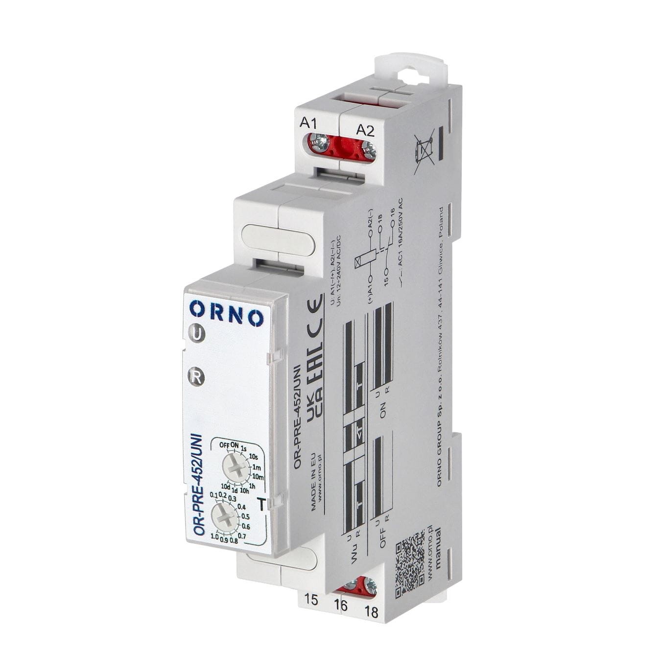 Przekaźnik czasowy-załączanie na ustawiony czas ORNO OR-PRE-452/UNI uniwersalne zasilanie