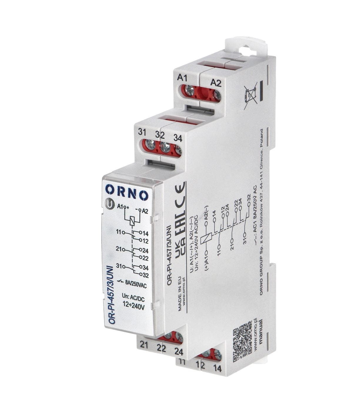 Przekaźnik instalacyjny 3P 8A 12V-240V ORNO OR-PI-457/3/UNI