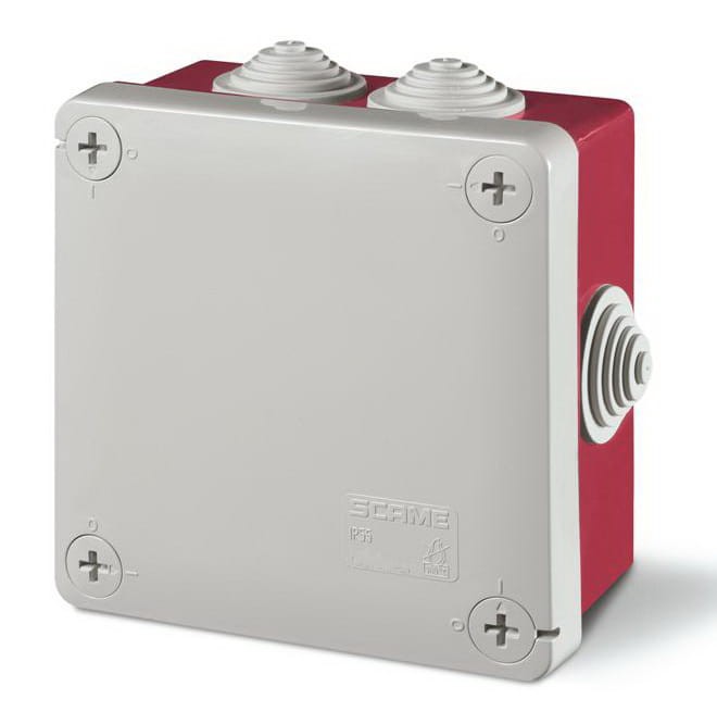 Puszka instalacyjna Cubik (4 sztuki) zamykana czerwona z dławnicami bez wkrętów IP55 688.003R - SCAME