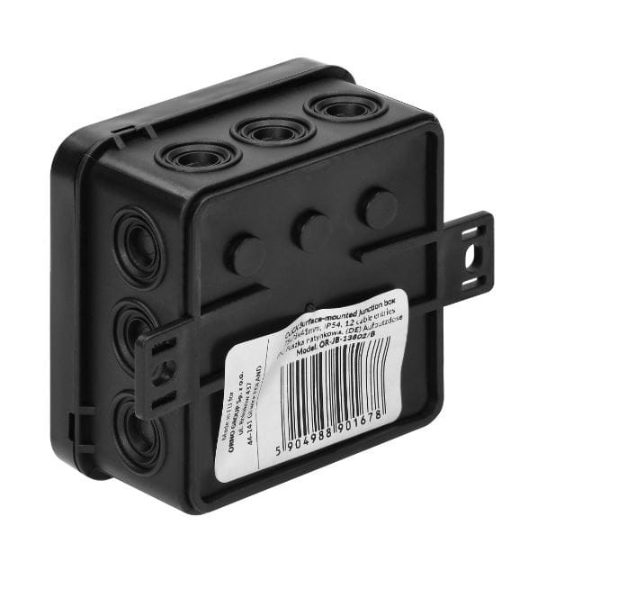 Puszka natynkowa Click 12 przepustów kablowych IP54 ORNO CLICK OR-JB-13802/B/66 komplet 66 sztuk. Stosowana do prowadzenia natynkowych instalacji elektrycznych, a także do przedłużania obwodów i podczas napraw obwodów elektrycznych. Umożliwia montaż 12 przewodów, które przeprowadza się w miejsce osłabienia, aby wprowadzić je do puszki. Produkt jest odporny na działanie warunków atmosferycznych, więc może być stosowany zarówno wewnątrz, jak i na zewnątrz pomieszczeń. Posiada zdejmowaną pokrywę, którą przytwierdza się do korpusu na tzw. klik/zatrzask.