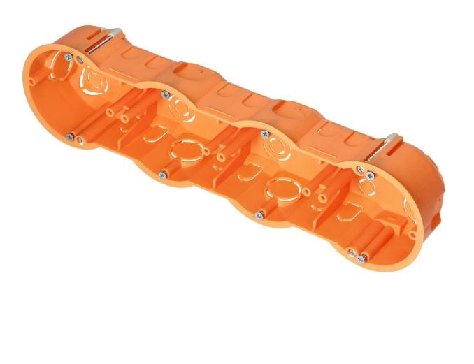 - poczwórna puszka podtynkowa, wykonana z polipropylenu w kolorze pomarańczowym