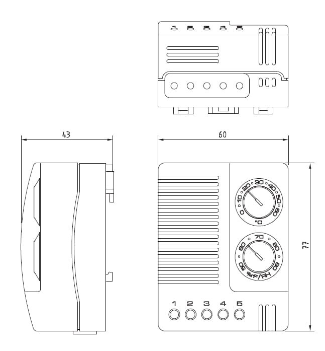 - różnica przełączeń (temperatura) 2K ± 1K (przy 25oC i 50% wilgotności względnej)