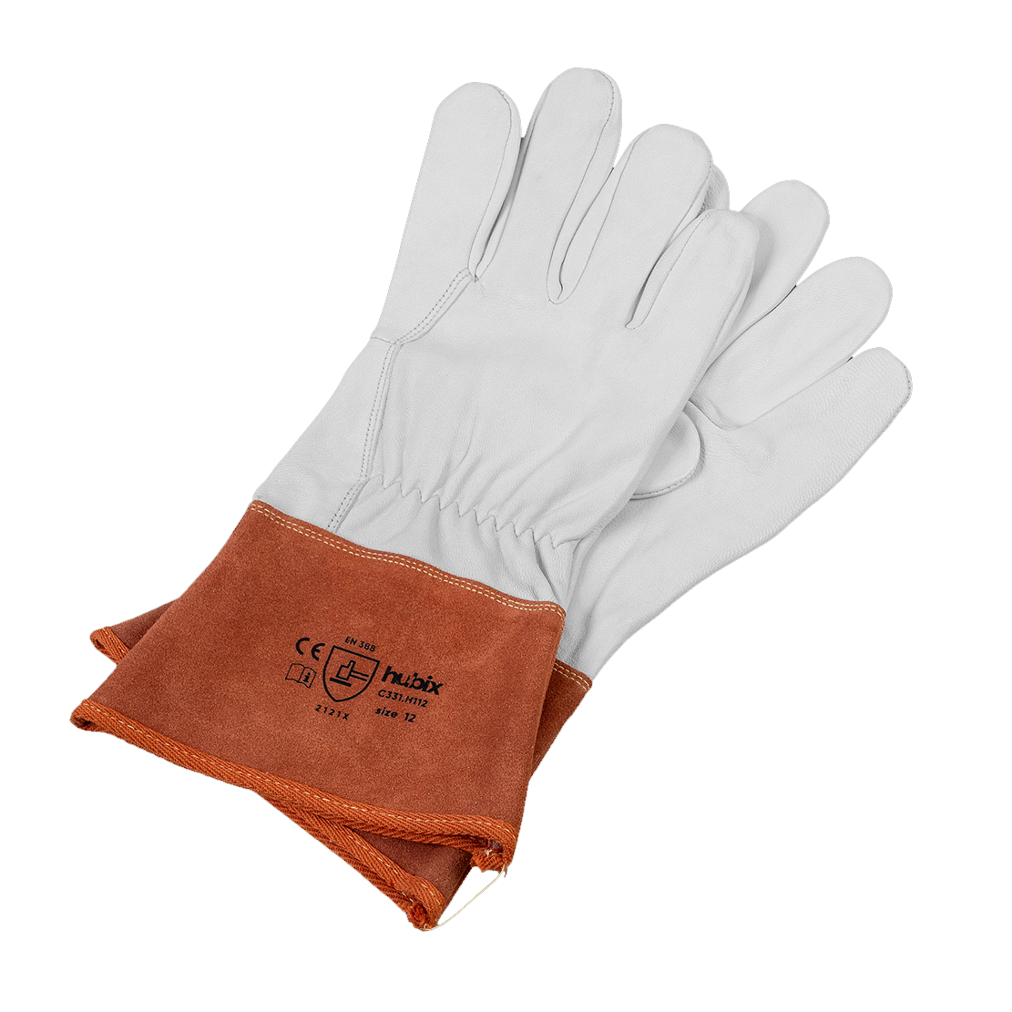 Rękawice ochronne rozmiar 12 skórzane HUBIX C331.H112 to nowość wśród rękawic, których część ochraniająca dłoń wykonana jest z miękkiej, elastycznej koźlej skóry licowej w kolorze naturalnym. Mankiet wykonany ze skóry bydlęcej w kolorze brązowym. Powinny być zawsze używane z rękawicami elektroizolacyjnymi w celu ich ochrony przed zagrożeniami mechanicznymi.