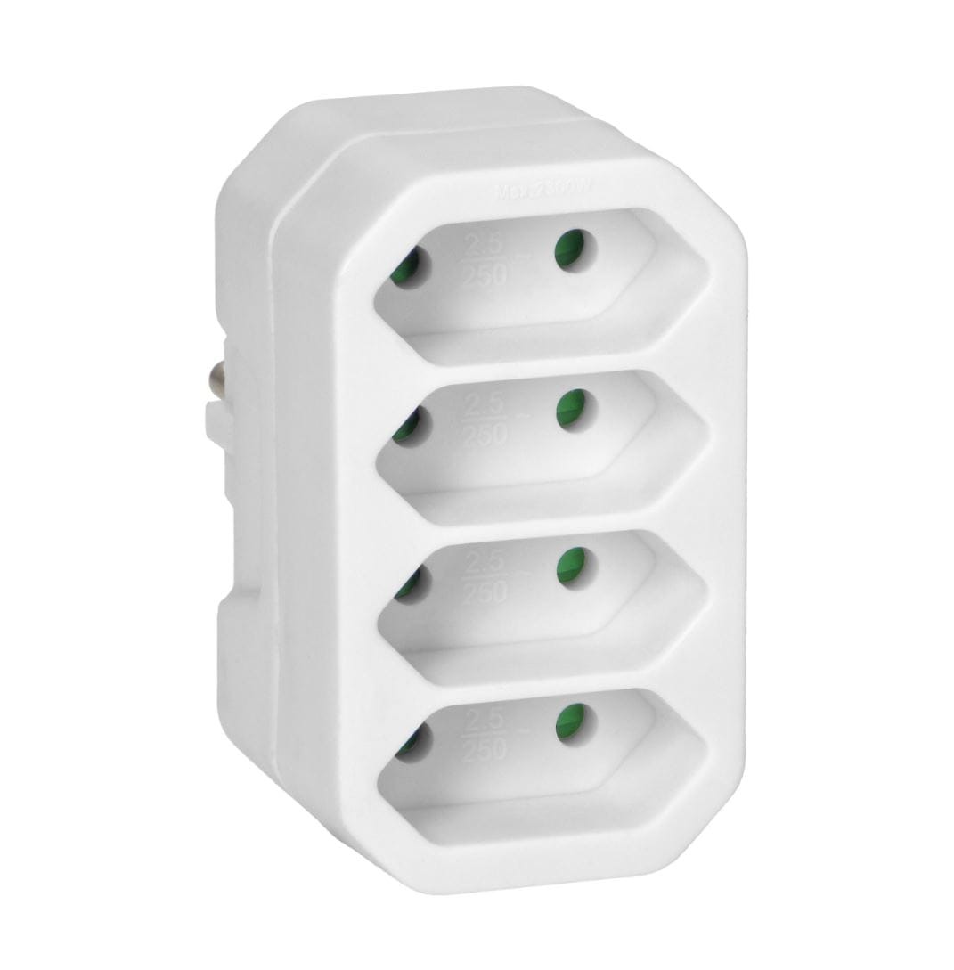 - wykonany z tworzywa termoplastycznego w kolorze białym, korpus ma kształt prostokątny, wyposażony w 4 gniazda euro