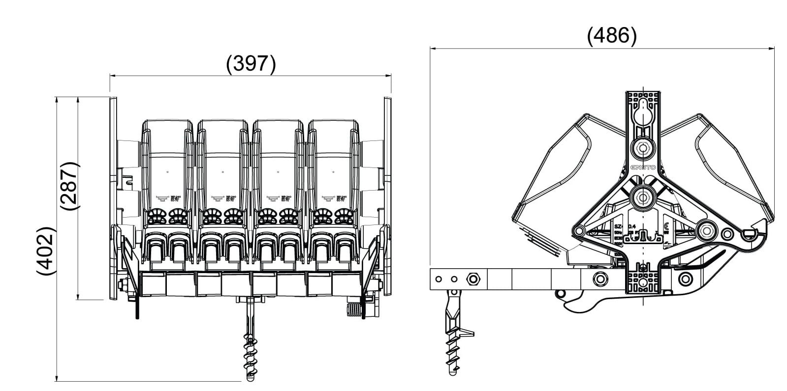 Rozłącznik bezpiecznikowy 400A 4P czterobiegunowy ENSTO SZ400.4, w którym wszystkie tory są rozłączalne. Instalowany do słupa na wspornikach PEK43 lub PEK49. Rozłączniki te zastępują rozłączniki SZ46, SZ46.08 i SZ46.1. Części izolacyjne wykonane są z odpornego na mróz i promieniowanie UV tworzywa sztucznego. Części stalowe są cynkowane na gorąco lub wykonane ze stali nierdzewnej.
