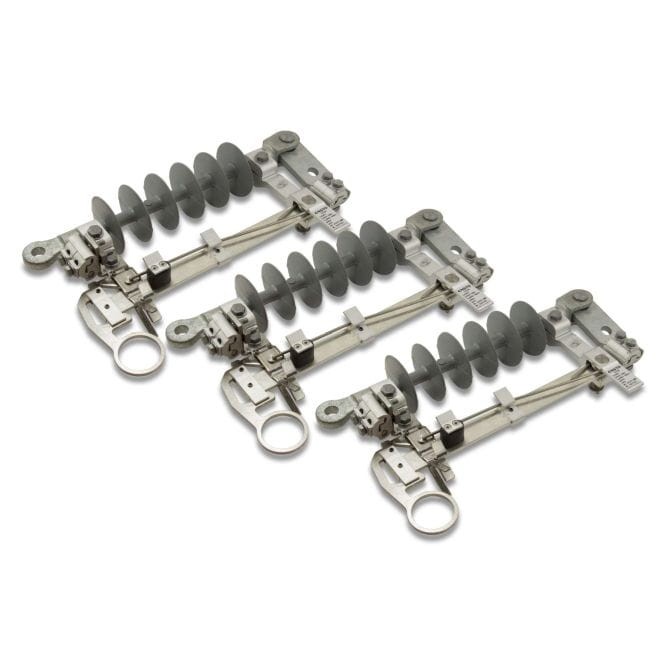 Rozłącznik napowietrzny trójfazowy i 6 uchwytów Ensto zestaw. Asortyment PROSPERSKLEP uzupełniono o rozłącznik napowietrzny ENSTO SZ24M.255 stosowany w sieciach SN w sytuacjach awaryjnych dla odłączania uszkodzonego odcinka linii i skrócenia czasu trwania awarii. W tej zmodernizowanej wersji SZ24M rozłącznik będzie wyposażony w dźwignię napędu z ramkami o prostokątnym kształcie znacznie ułatwiającymi operowanie rozłącznikiem z użyciem długiego drążka (np. z poziomu ziemi). Do tego celu używana jest specjalna nasadka (rozwiązanie firmy Hubix) do izolacyjnych drążków manewrowych. Rozłącznik ten można stosować również do odłączania nieobciążonych kabli, transformatorów SN/nn i fragmentów sieci SN (przykładowe warianty instalacji przedstawia fotografia 2 w galerii produktu). Rozłącznikiem ensto SZ24M można manewrować z poziomu ziemi przy użyciu drążków manewrowych CT60.50 i CT48.64. Wyposażony jest w zaciski przyłączeniowe KG41 - 2x(16-120)mm2 Al lub opcjonalnie KG43 - 2x(50-240)mm2 Al. Rozłącznik montowany jest łącznie z izolatorami odciągowymi na słupach odporowych (krańcowych) lub bezpośrednio na przewodach linii z użyciem uchwytów odciągowych. Komplet rozłącznika zawiera po 3 sztuki rozłącznika jednofazowego (z izolatorem z okuciami ucho płaskie,ucho widlaste) oraz łącznika dwuuchowego płaskiego, a także 6 szt. zacisku przyłączeniowego KG41 (opcjonalnie KG43). Uchwyty ENSTO SO 255.1 stosowane są do mocowania przewodów PAS na słupach krańcowych i odporowych. Dzięki klinowym szczękom z tworzywa sztucznego chwytają przewód przez izolację (nie wymagają zdejmowania izolacji). Wyposażony w zacisk naprężający do nieizolowanych przewodów PAS. Służy od ochrony przed m.in. łabędzimi, gołębiami, wróblami, krukami i innym ptactwem.