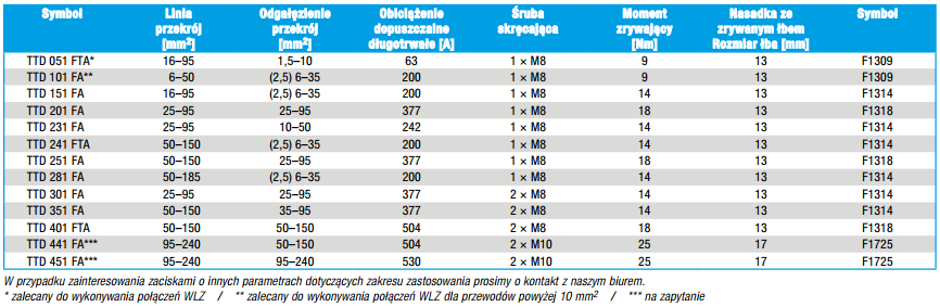- Zaciski są wyposażone w śrubę ze zrywalnym łbem;