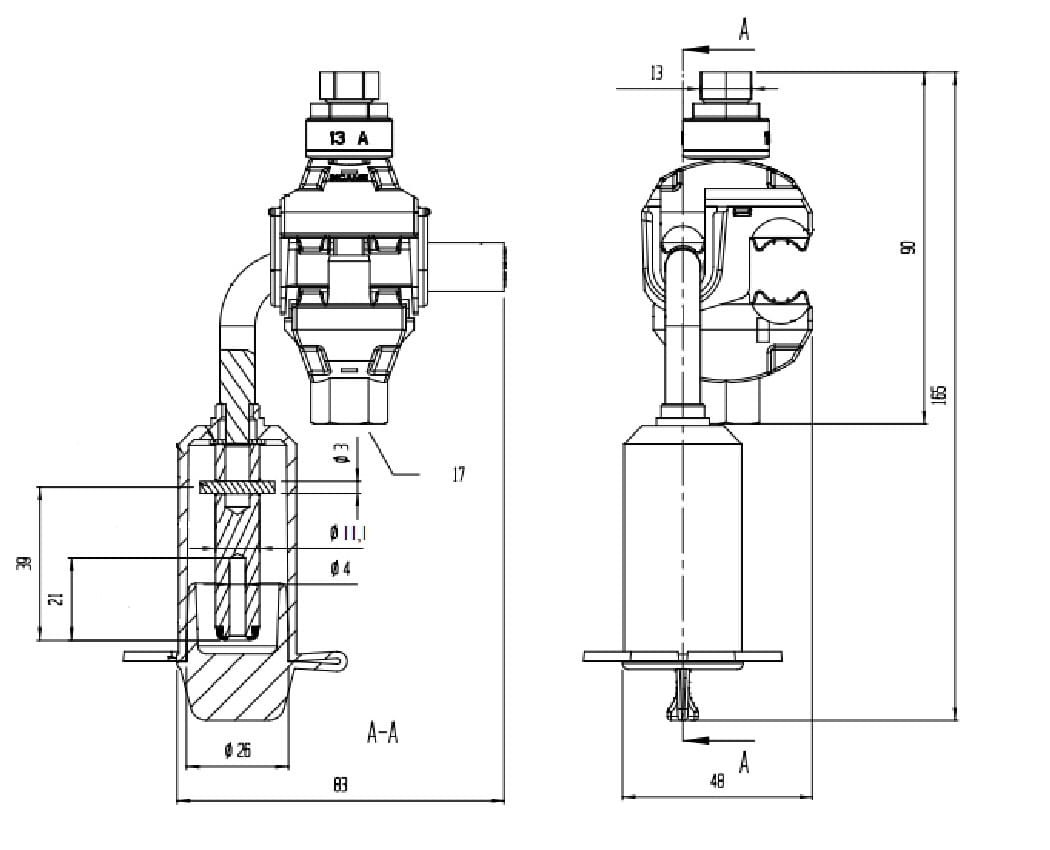 Stosowany do uziemiania przewodów linii izolowanej, zwierania przewodów linii lub podłączenia odbiorcy tymczasowego. Posiada złącze bagnetowe pozwalające na wielokrotne podłączanie.
