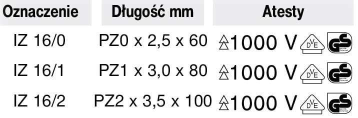 Śrubokręt krzyżowy PZ Pozidriv 0x2,5x60 (IZ16/0) - GPH NEXANS