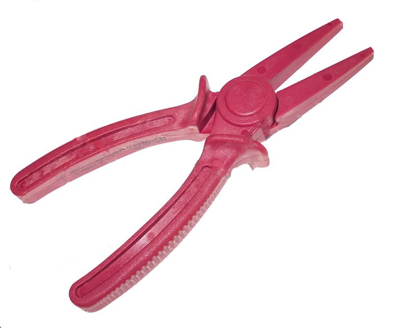 Narzędzie izolacyjne. Wykonanie z czerwonego poliamidu z 30% zawartością włókna szklanego, technologią wtryskową. Wykonanie i badania wyrobu (test 10kV/10s) zgodnie z normą EN 60900:2004