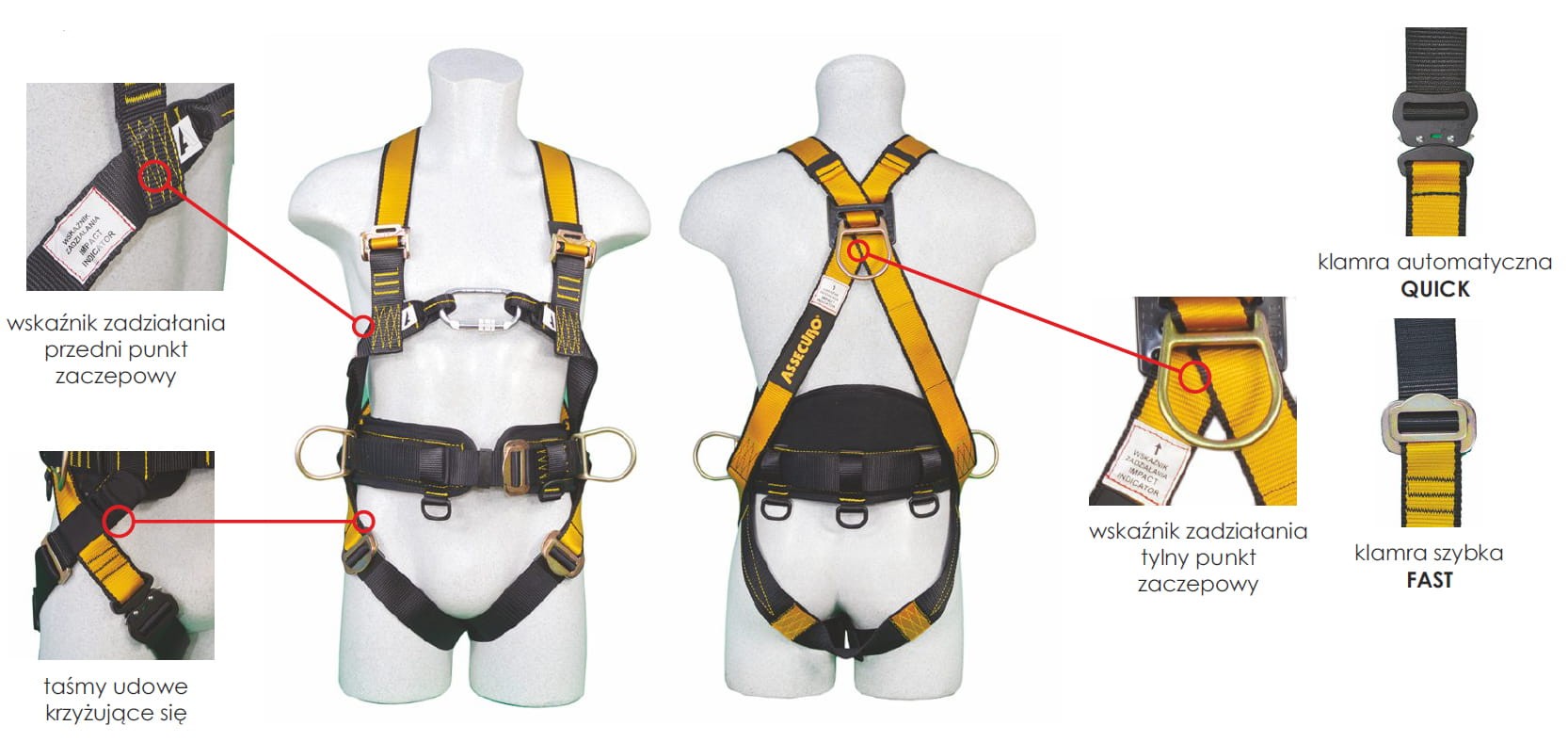 Szelki ELEKTRON EQUICK 3A NFC z zatrzaśnikiem (CA121 EQ) - klamry automatyczne - ASSECURO