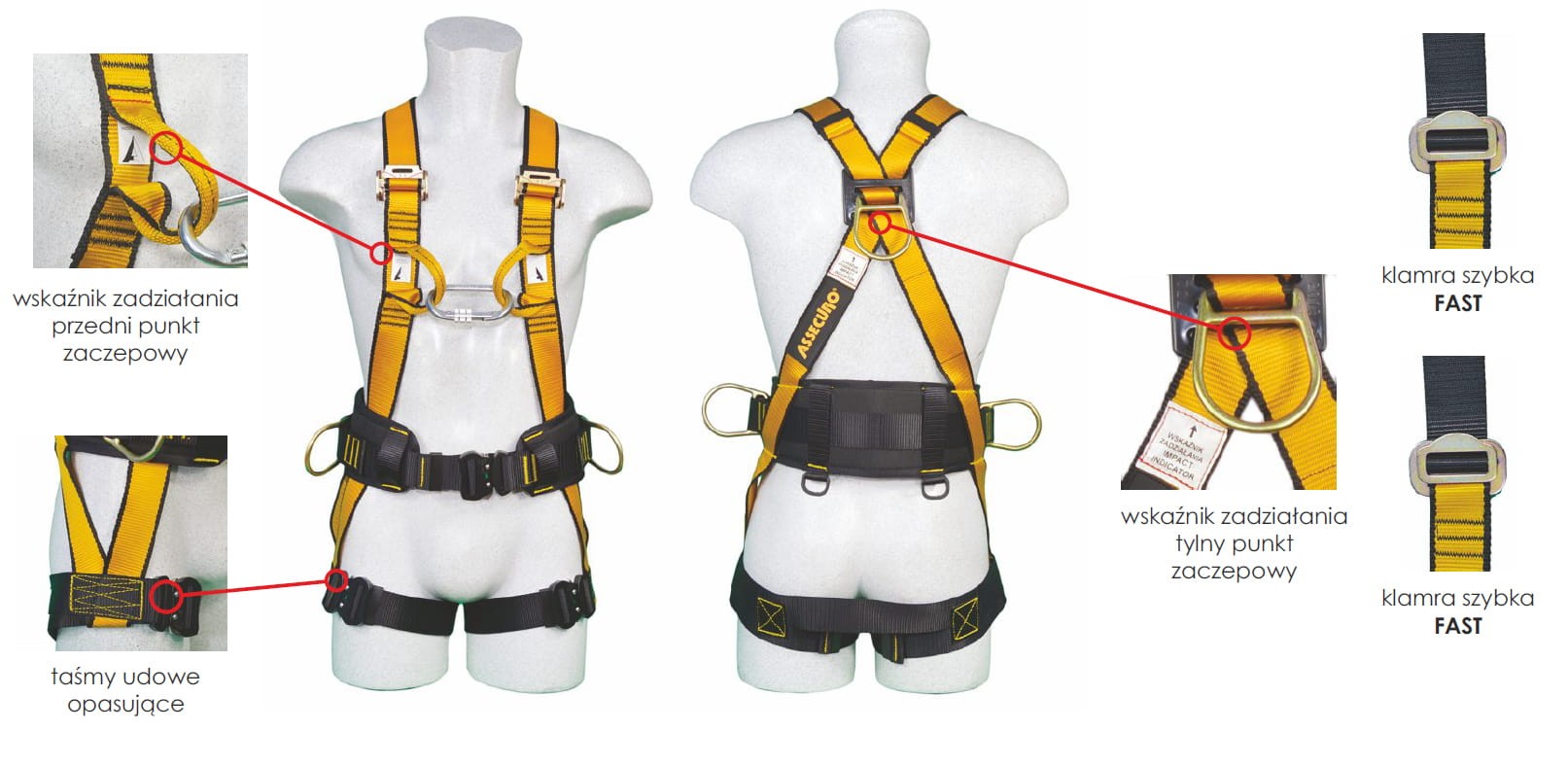Szelki POZYTON (CA161) nfc z zatrzaśnikiem - klamry szybkie - ASSECURO