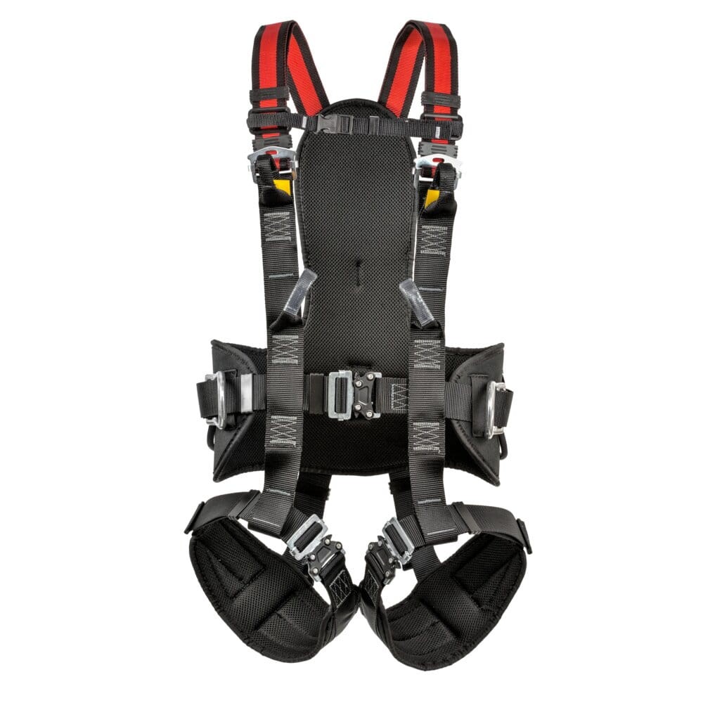 - udoskonalone klamry regulacyjno-spinające wykonane zostały z ocynkowanej stali wysokowęglowej oraz tworzywa ABS, umożliwiają łatwe i szybkie zakładanie szelek oraz pozwalają na dopasowanie długości wszystkich pasów do sylwetki ciała użytkownika
