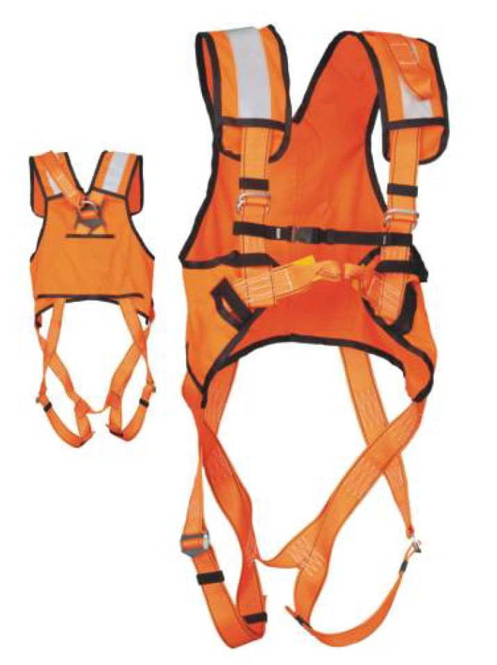 Nowość w PROSPERSKLEP Sosnowiec szelki bezpieczeństwa PROTEKT P-30HV+ z taśmami odblaskowymi w jaskrawym pomarańczowym kolorze wraz z kamizelką wykonane zostały wykonane z odcinków taśm odpowiednio ze sobą zszytych i połączonych ze sobą za pomocą klamer metalowych. Powstały w ten sposób układ zapewnia pełny komfort i bezpieczeństwo pracy. Występują w dwóch rozmiarach polecane szczególnie do krótkotrwałych, sporadycznie wykonywanych prac na wysokościach.